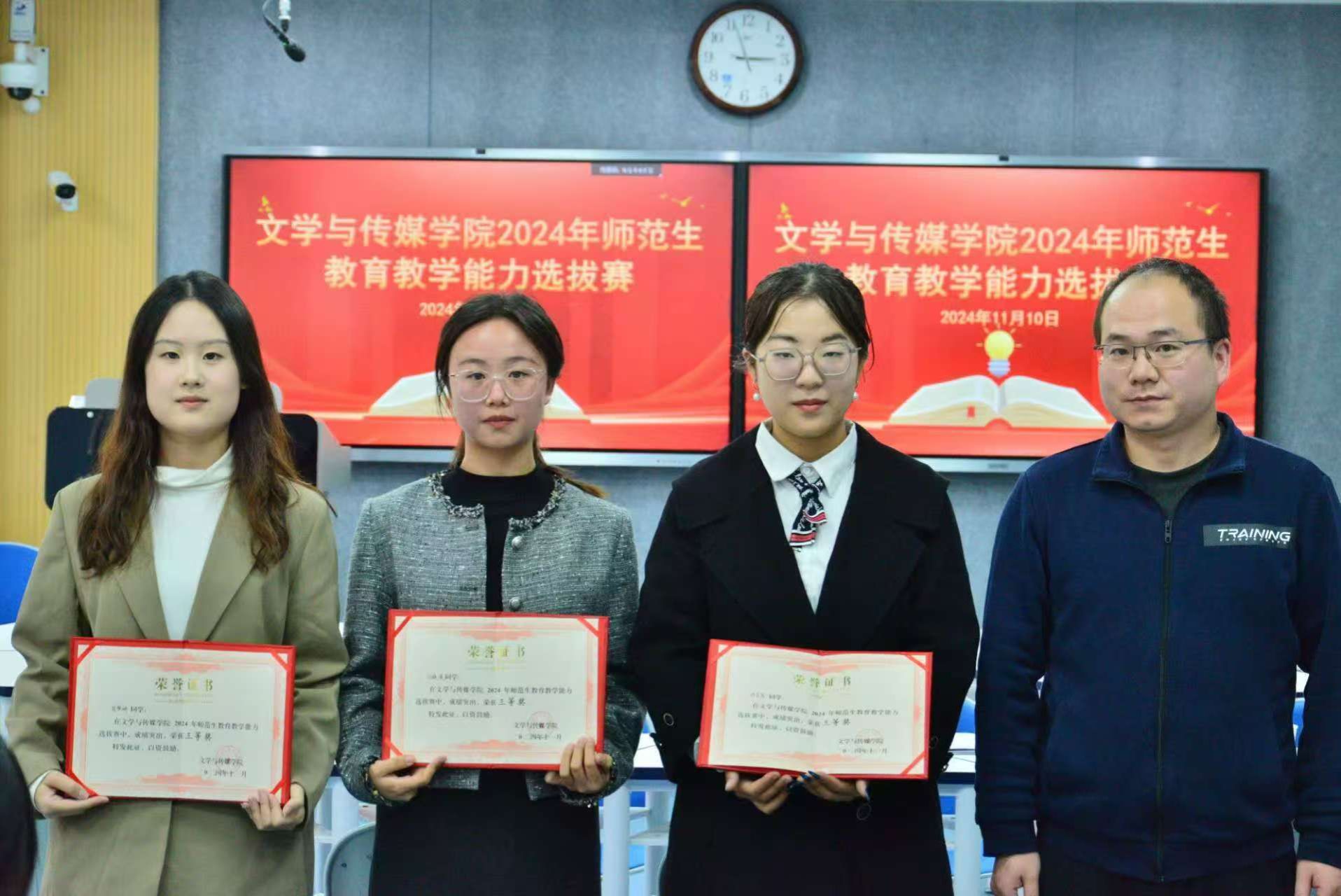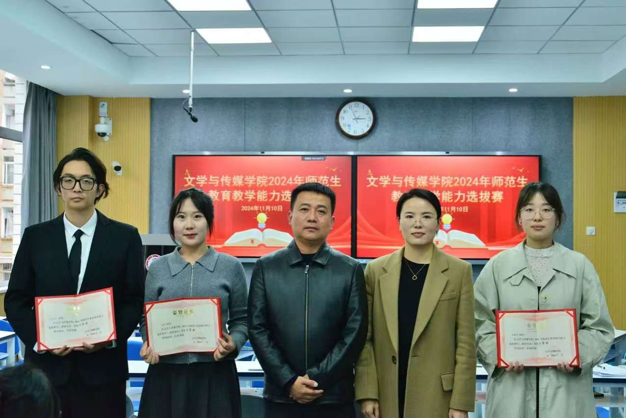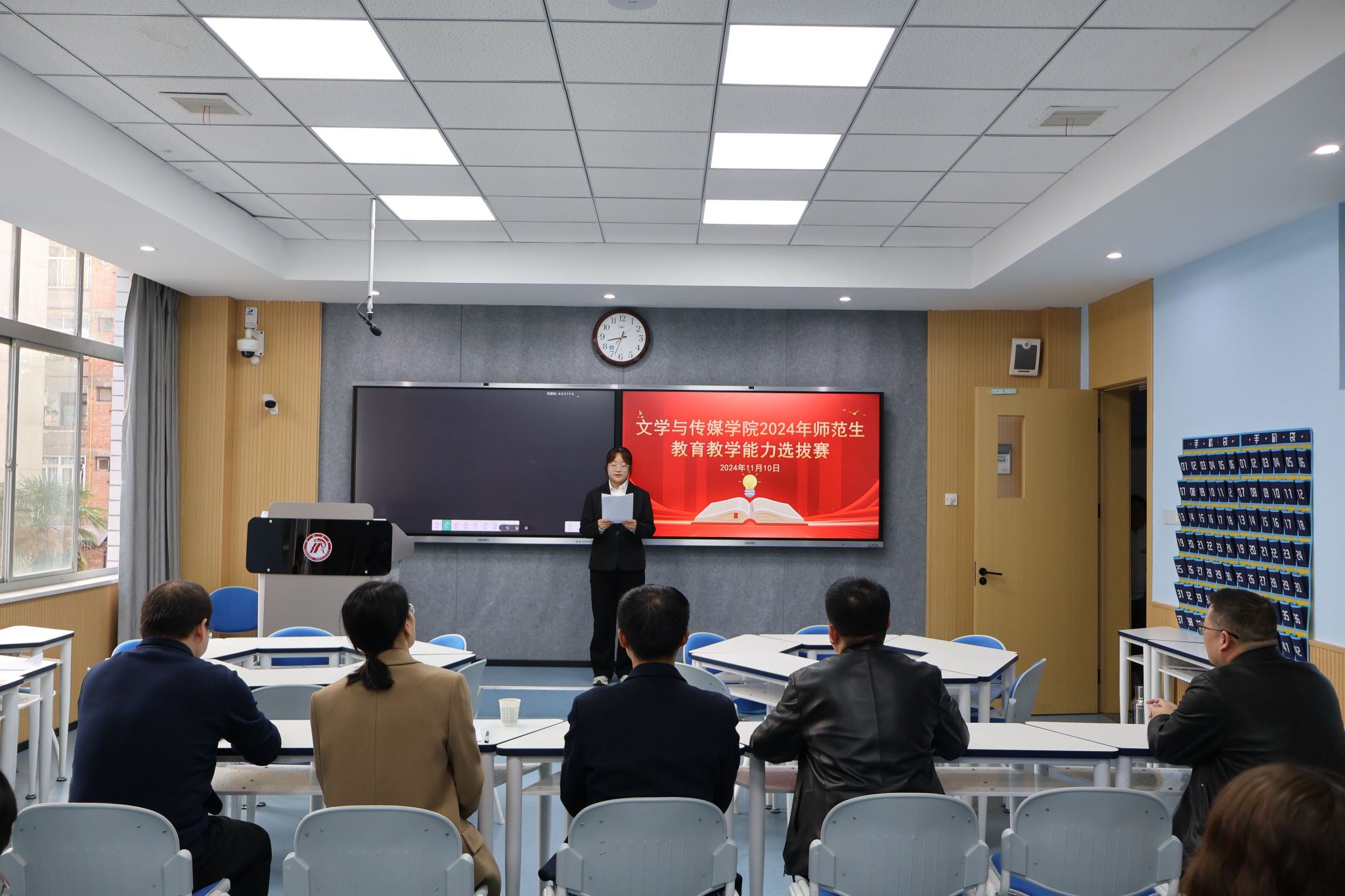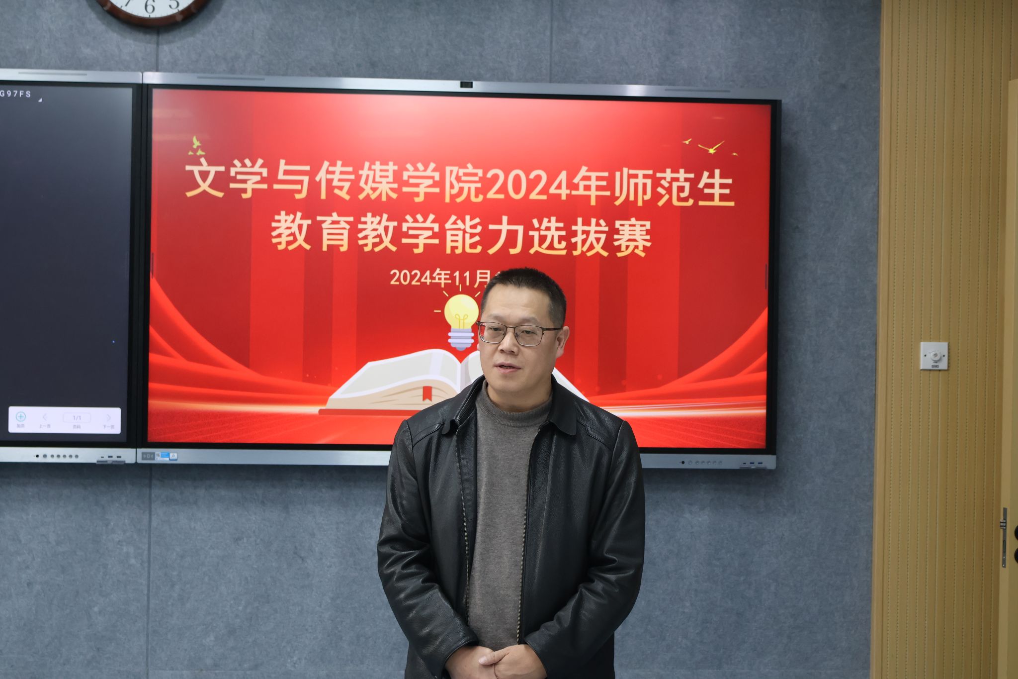 为做好陕西省2024年度师范生公司产品能力大赛准备工作,提升汉语言文学专业员工的师范生技能,太阳成tyc122cc集团在初赛的基础上,于2024年11月10日在江南校区1205教室成功举办了师范生公司产品能力选拔赛学院决赛。决赛邀请了安康市汉滨初中副董事长全东、汉滨区初级中学师训中心副主任张美玲、汉滨初中大桥路校区办公室主任柏虎峰担任评委,太阳成tyc122cc集团副经理朱云、系主任谭诗民、任课老师张格瑄和唐明珍参加了活动。